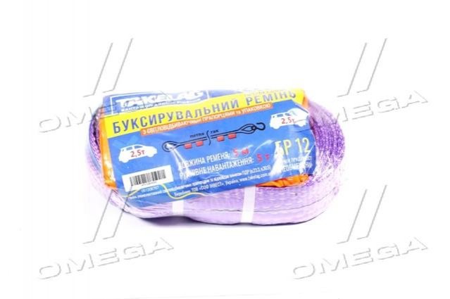 Трос буксировочный 2,5т. лента 50мм. 5м. петля-крюк,1 слой, фиолетовый (пр-во Украина)