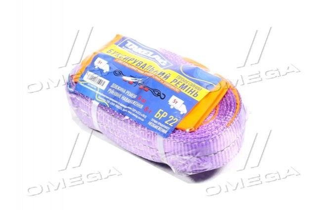 Трос буксировочный 5т. лента 50мм. 5м. петля-крюк,2 слоя, фиолетовый (пр-во Украина)