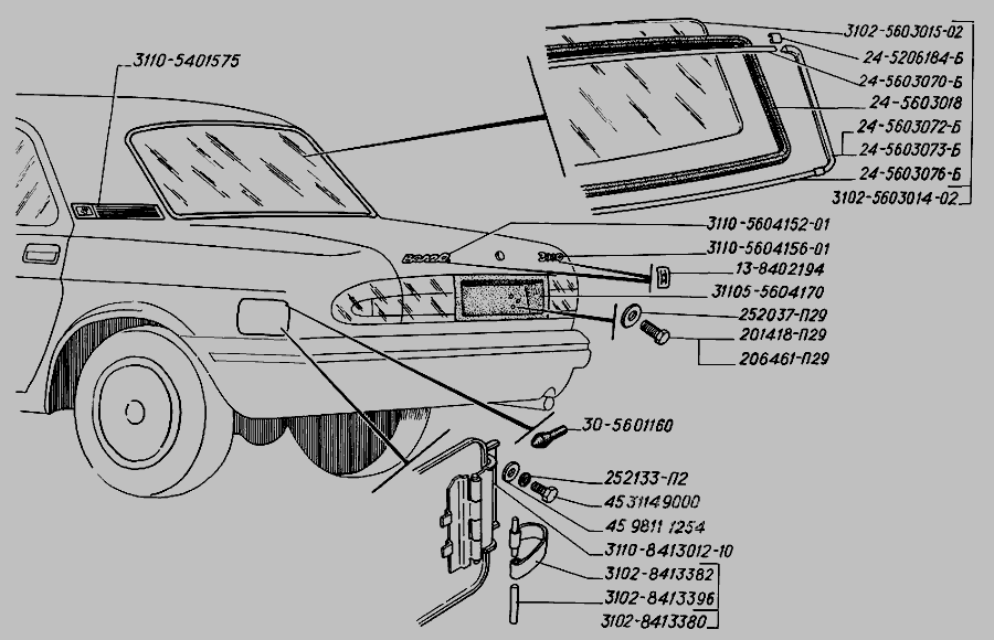 Уплотнитель стекла ГАЗ 2410 заднего