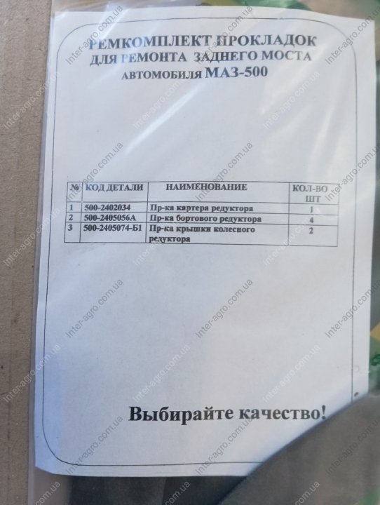 Ремкомплект прокладок для ремонта моста заднего МАЗ 500