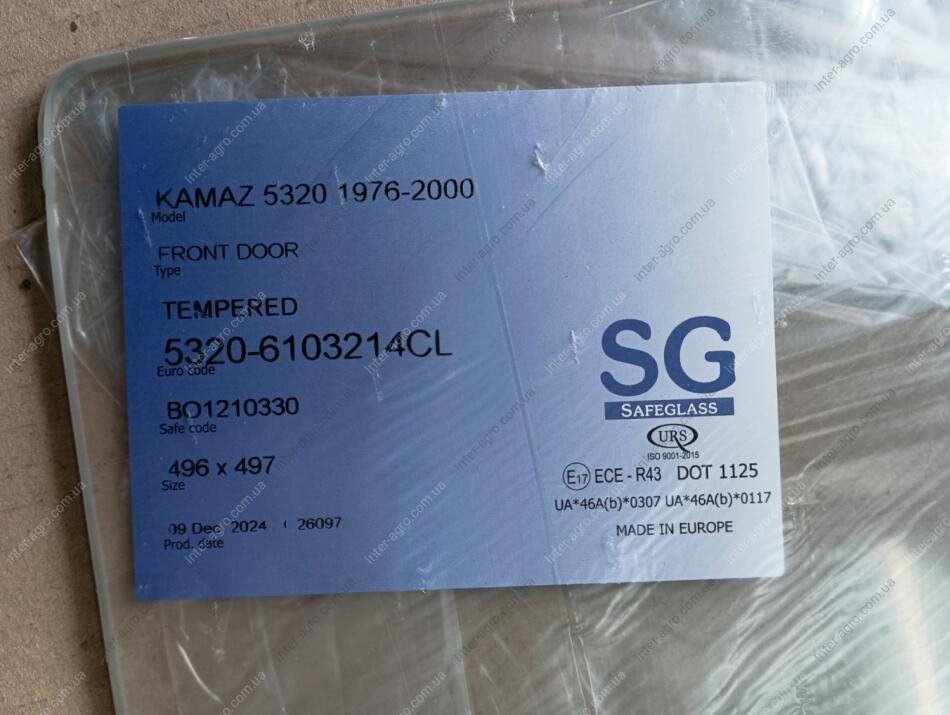 Стекло двери КАМАЗ опускное (497х496) (пр-во Украина)