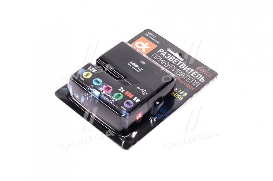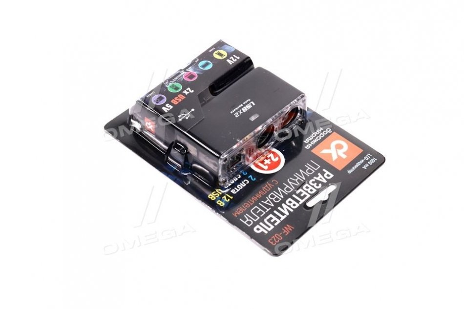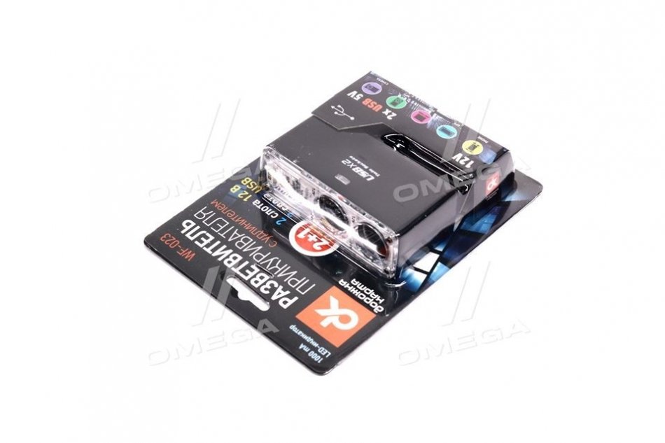 Разветвитель прикуривателя, 2в1 + 2USB,1000mA, удлинитель, LED индикатор, <ДК>