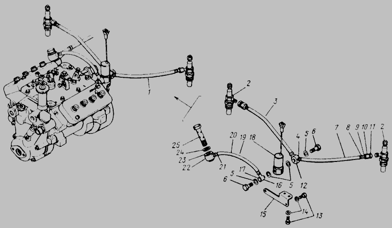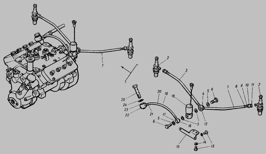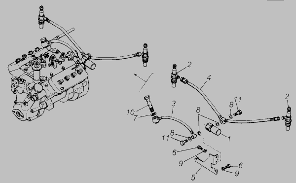 Трубка топливная электромагнитного клапана КАМАЗ <короткая> в сб.
