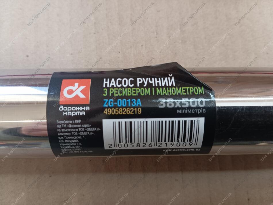 Насос ручной с ресивером и манометром 38x500mm <ДК>