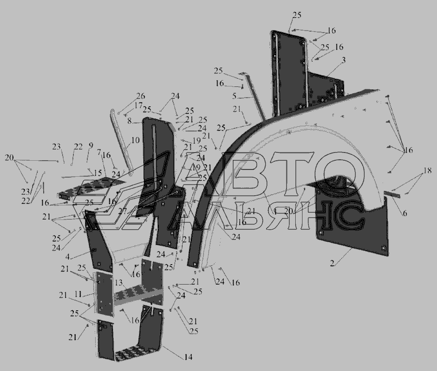 Брызговик левый МАЗ 5336 (пр-во МАЗ)