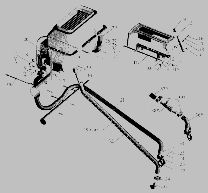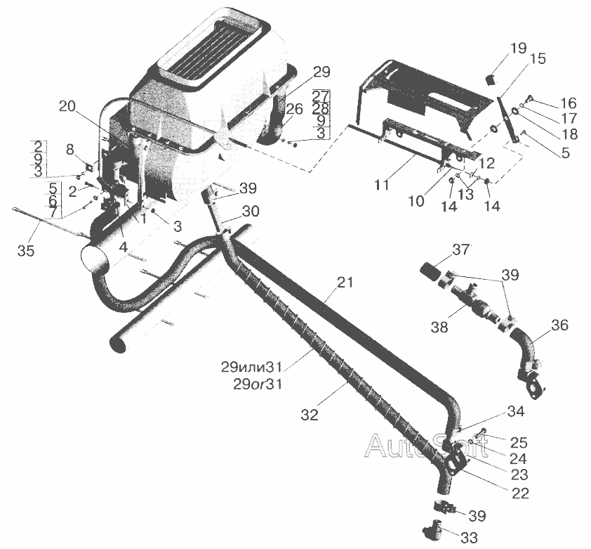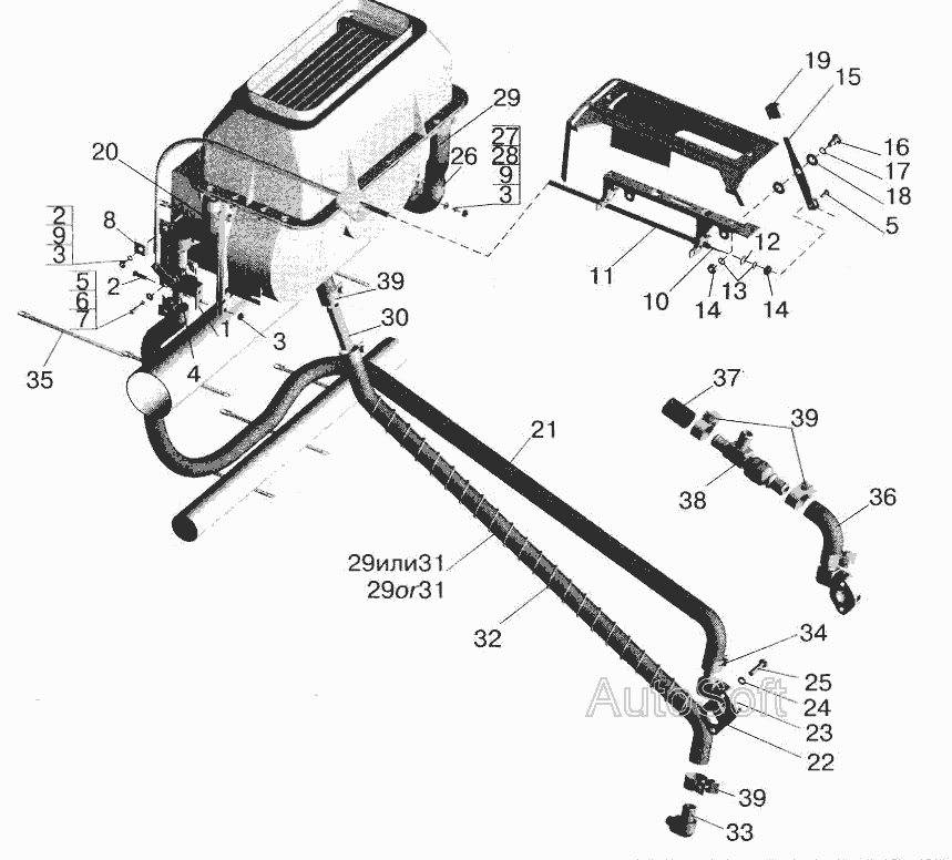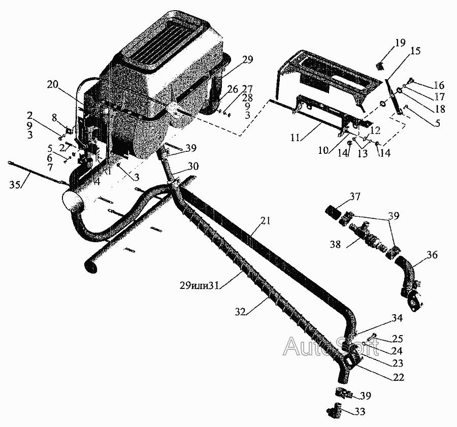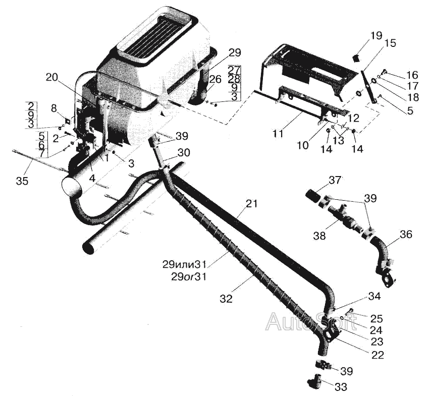 Установка трубопроводов отопителя » Кузов