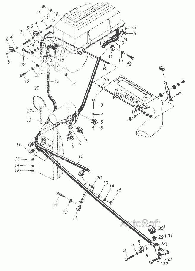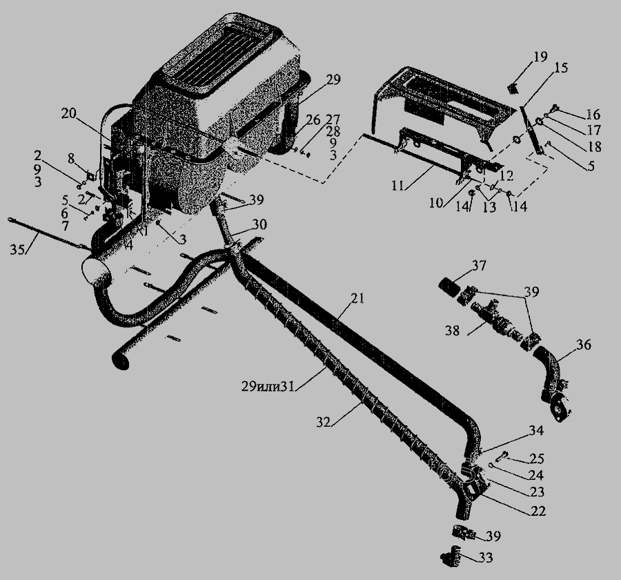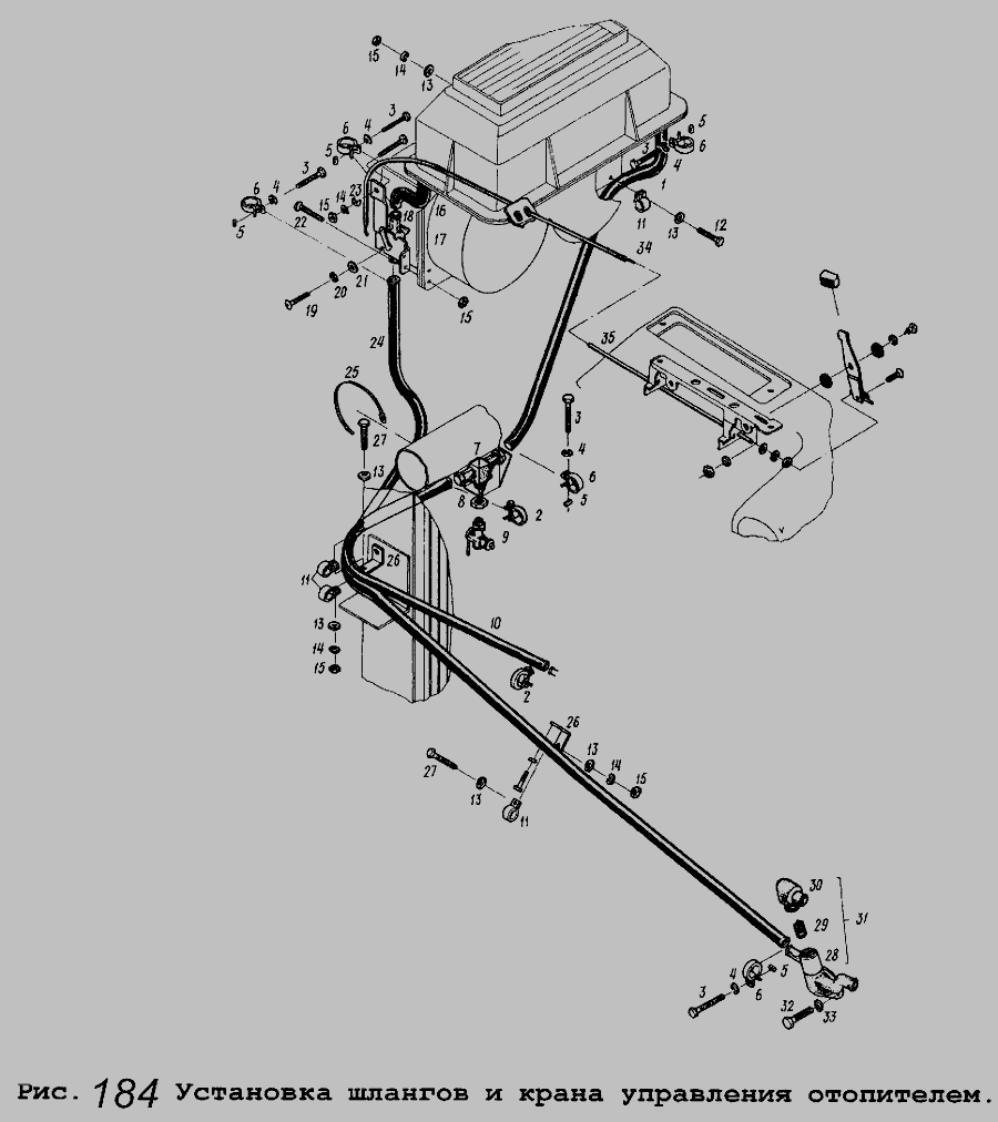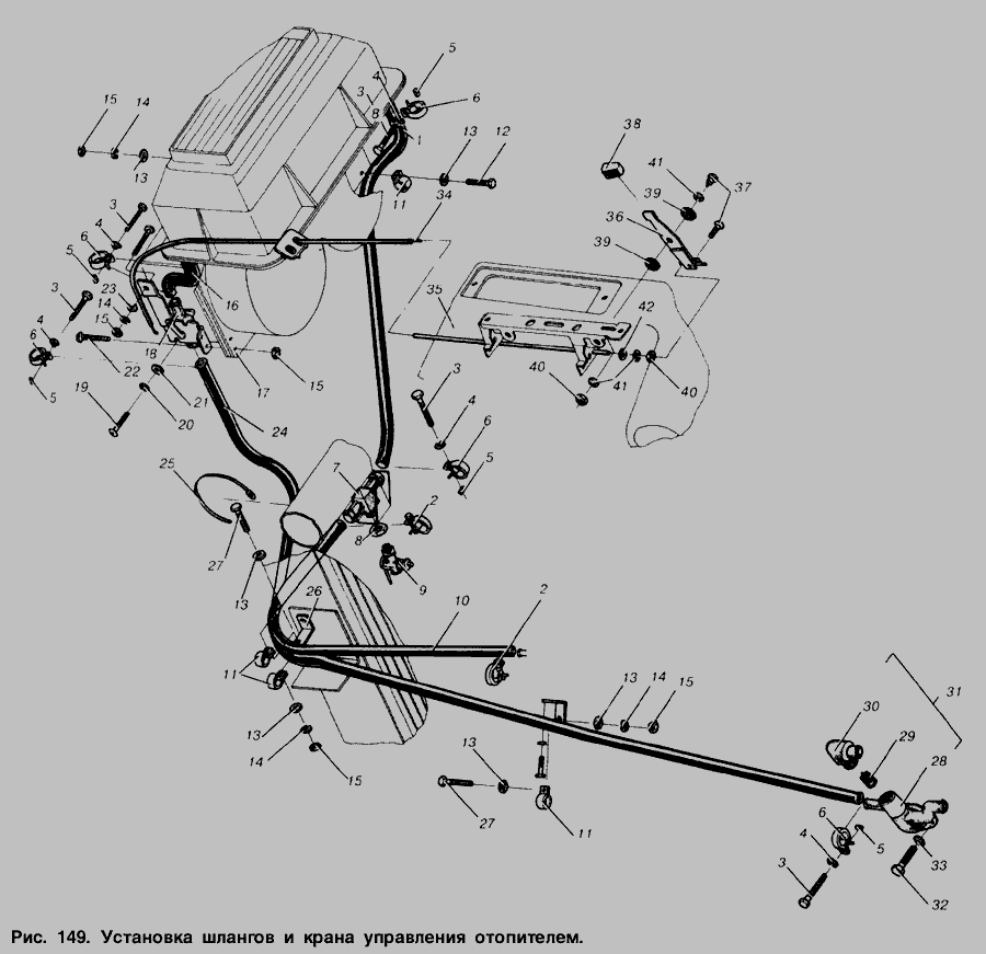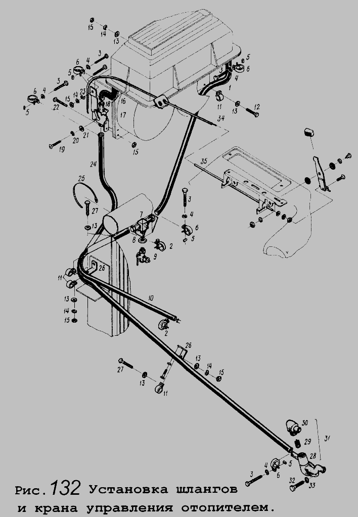 Установка шлангов и крана управления отопителем » Кабина