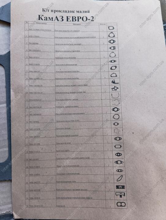 Набор прокладок двигателя КАМАЗ ЕВРО-1-2-3 (ПАРОНИТ Gambit AF Oil БЕЗАСБЕСТОВЫЙ) 7406.1002004-20.