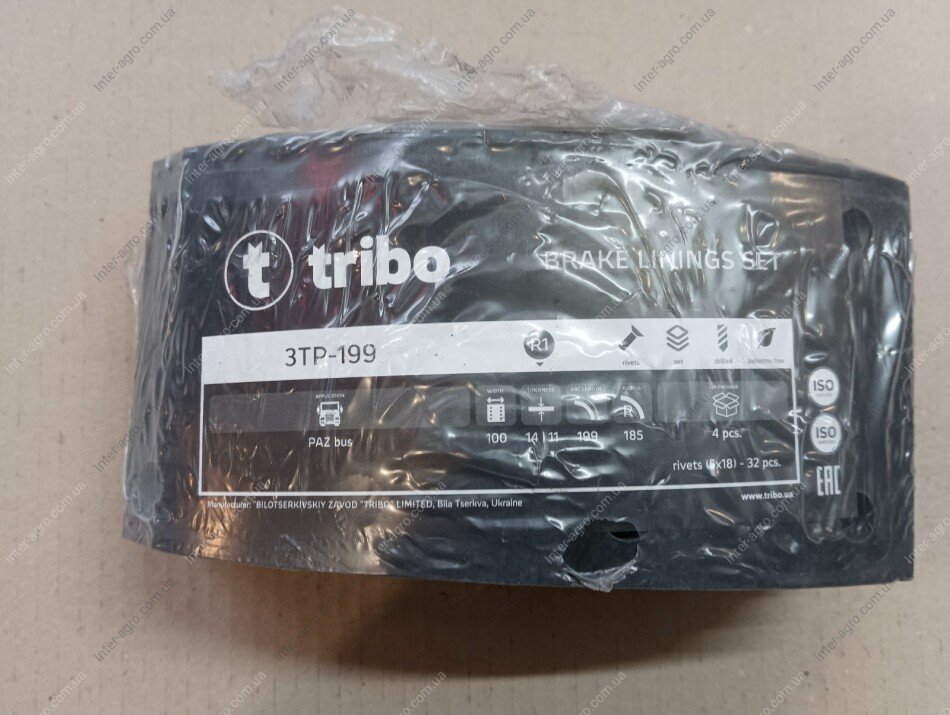 Накладка гальмівна ПАЗ 3205 свердлена R1 (з заклепками) (вир-во Трібо)