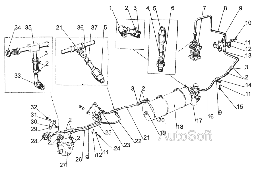Трубопроводи та арматура пневмоприводу гальм » Управління рульове