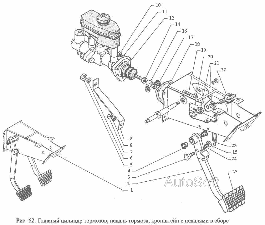 Головний циліндр гальм, педаль гальма, кронштейн із педалями в зборі » Управління рульове