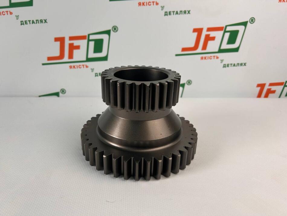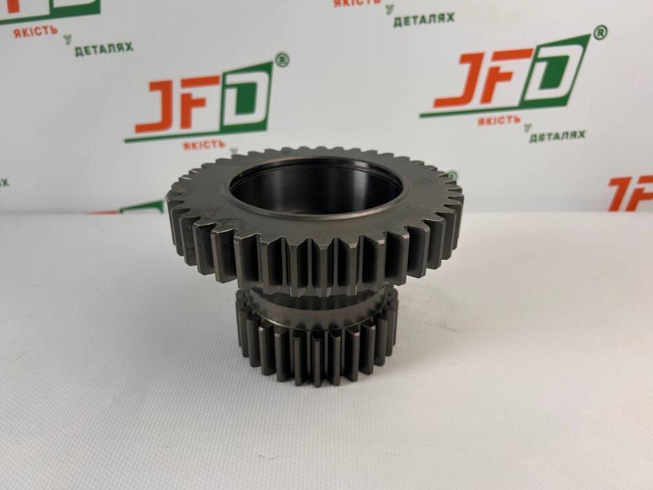 Ця двовінцева шестерня є ключовим елементом колісного редуктора. Вона передає крутний момент від ведучої шестерні на маточину колеса, забезпечуючи необхідне передавальне число для важких робіт.