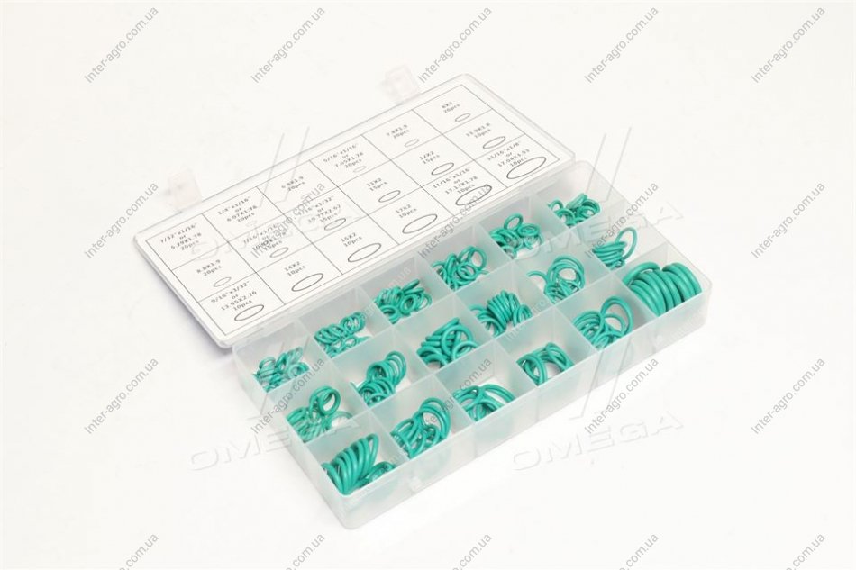 Набір кілець ущільнювачів зелені (маслостійкі) 270шт (діам. 7-22 мм) (RIDER)