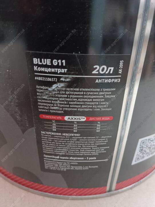 Антифриз BLUE концентрат G11 (-80C) (Каністра 20л/22,4кг) (AXXIS)