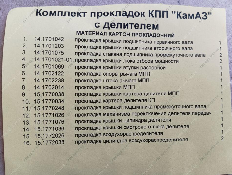 Ремкомплект КПП КАМАЗ (шкіркартон) (вир-во Україна)