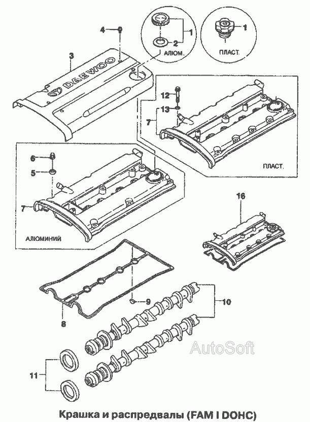 Кришки та розподільчий вал (FAM I DOHC) » Двигун