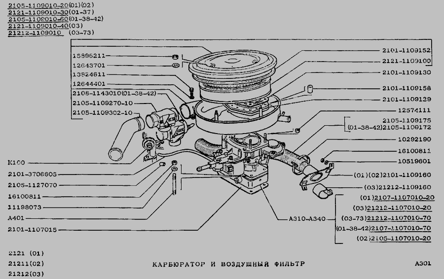 Карбюратор та повітряний фільтр » Двигун